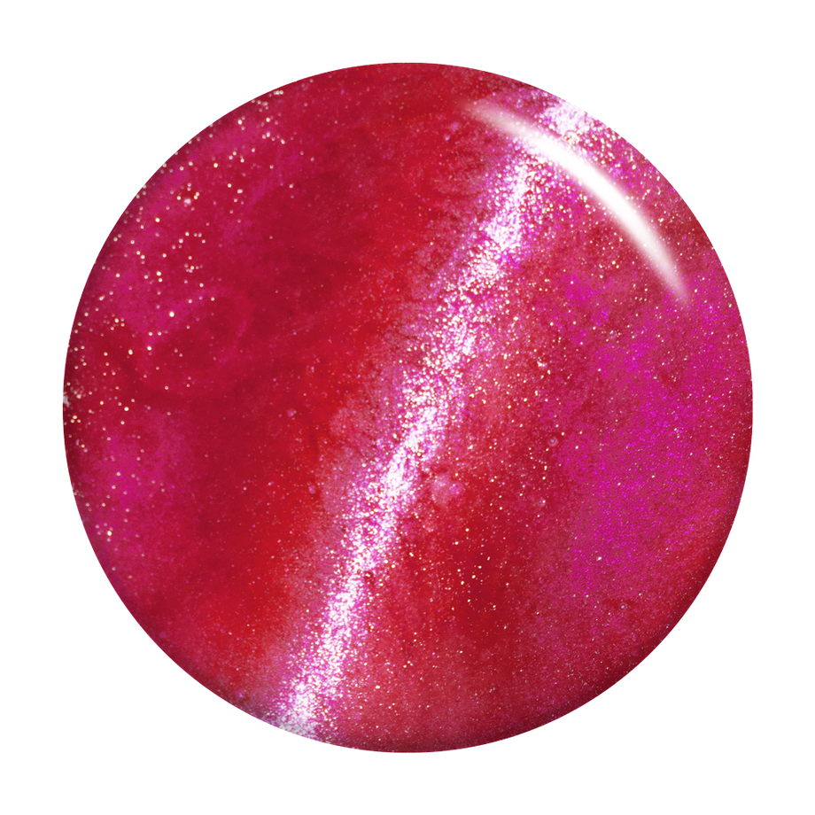 Ruby pink. Medium-dark. Pink magnetic shimmer. Opaque. Cool undertone.